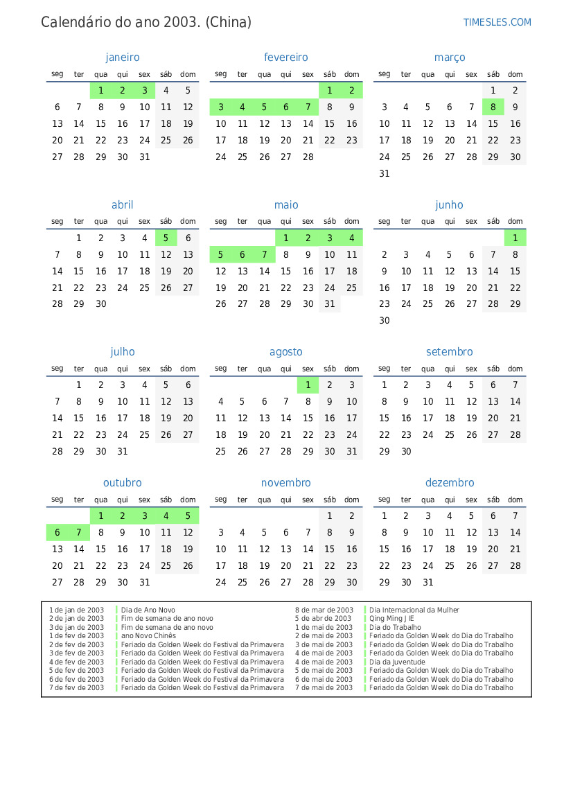 3 de fev de 2003 Feriado da Golden Week do Festival da Primavera