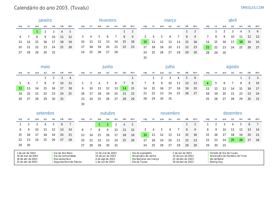 2 de out de 2003 Feriado do Dia de Tuvalu