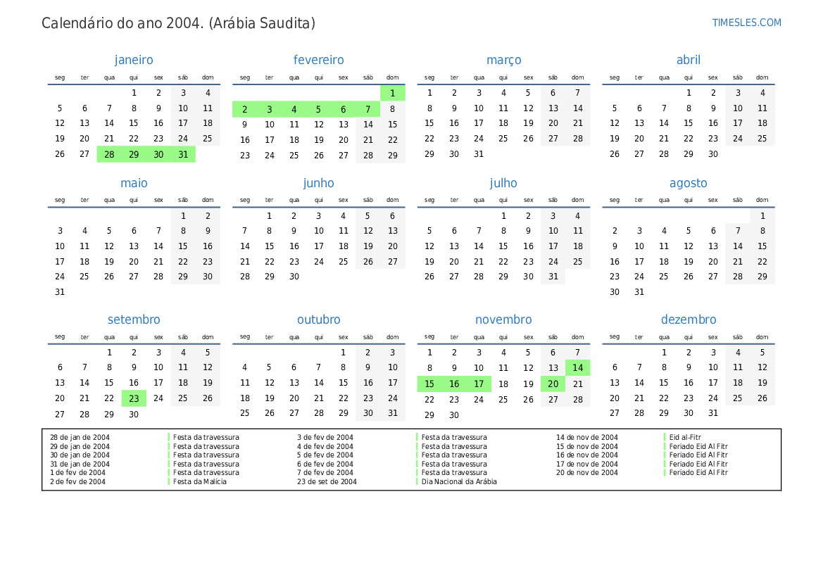19 de nov de 2004 Eid al-Fitr Holiday (somente setor público)