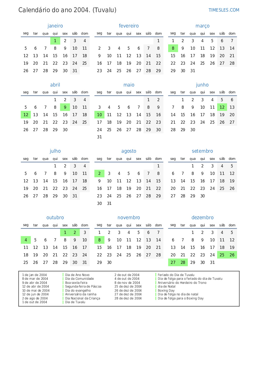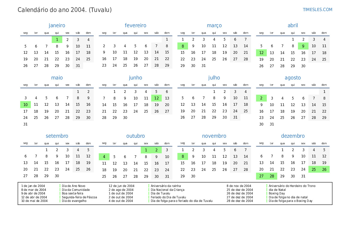 2 de out de 2004 Feriado do Dia de Tuvalu