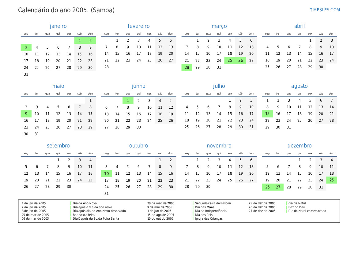 3 de jan de 2005 Dia após dia de Ano Novo observado