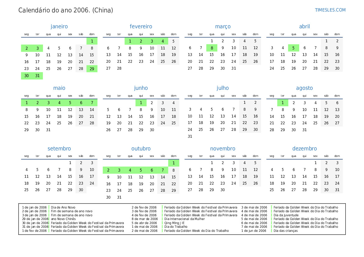 1 de fev de 2006 Feriado da Golden Week do Festival da Primavera