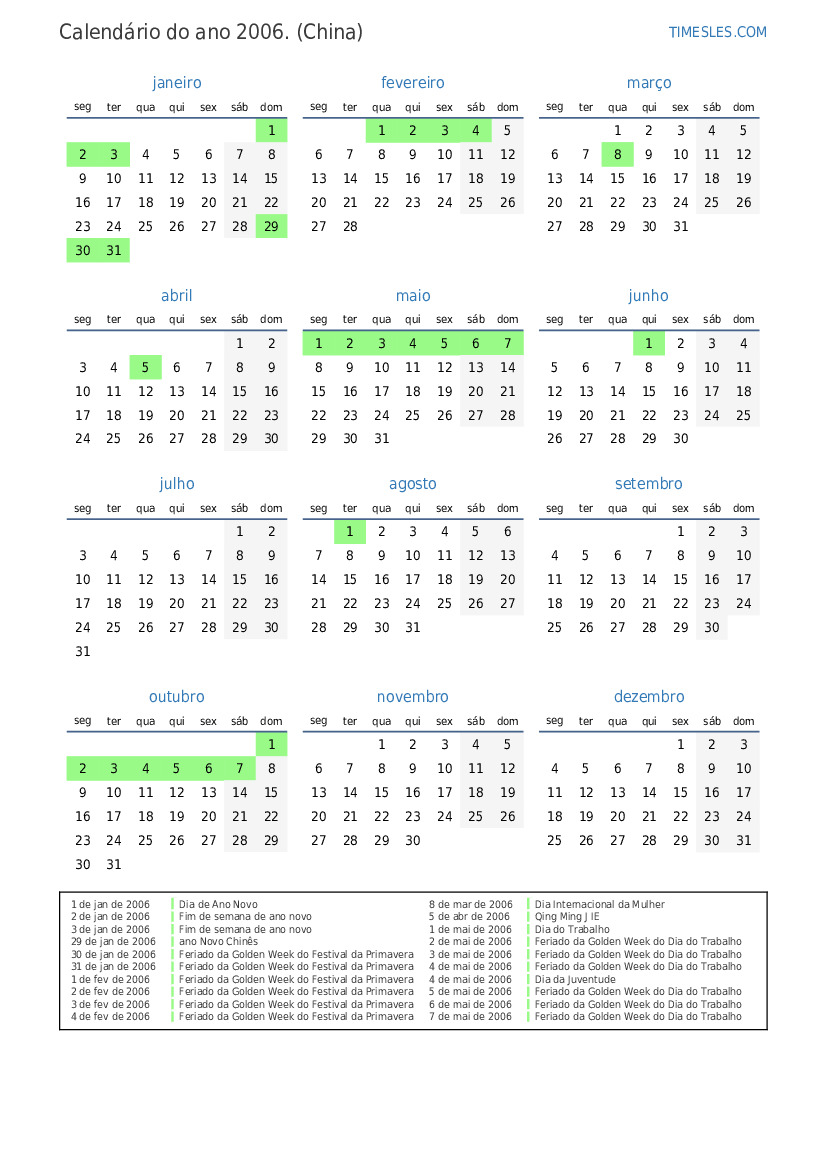 2 de fev de 2006 Feriado da Golden Week do Festival da Primavera
