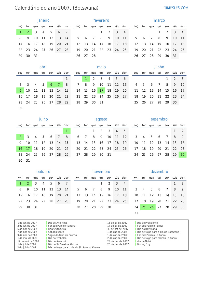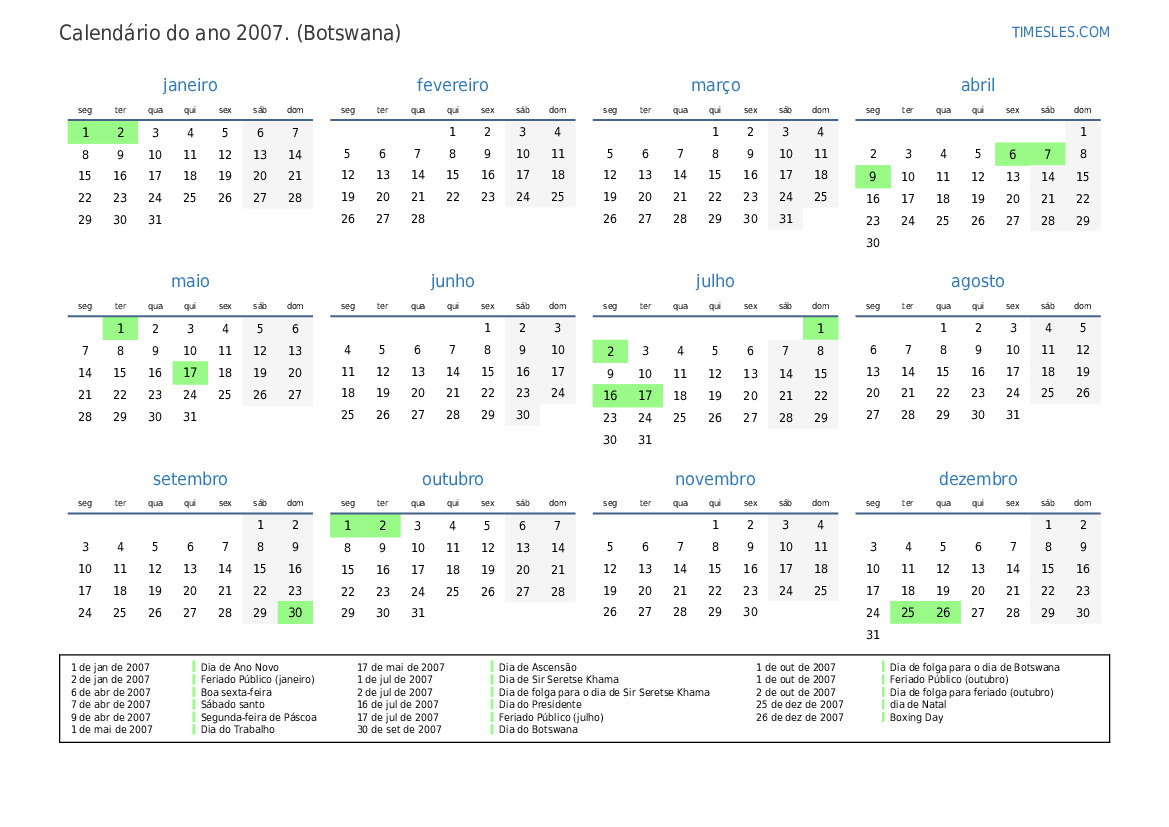 1 de out de 2007 Dia de folga para o dia de Botswana