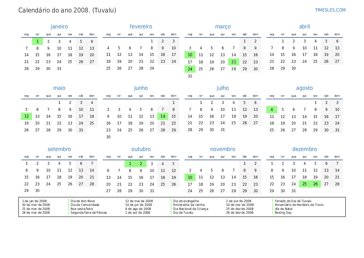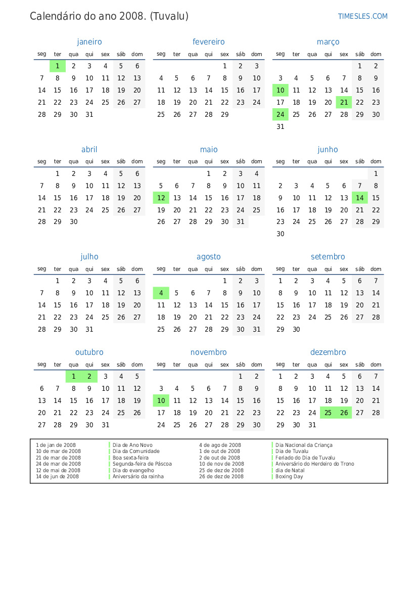 2 de out de 2008 Feriado do Dia de Tuvalu