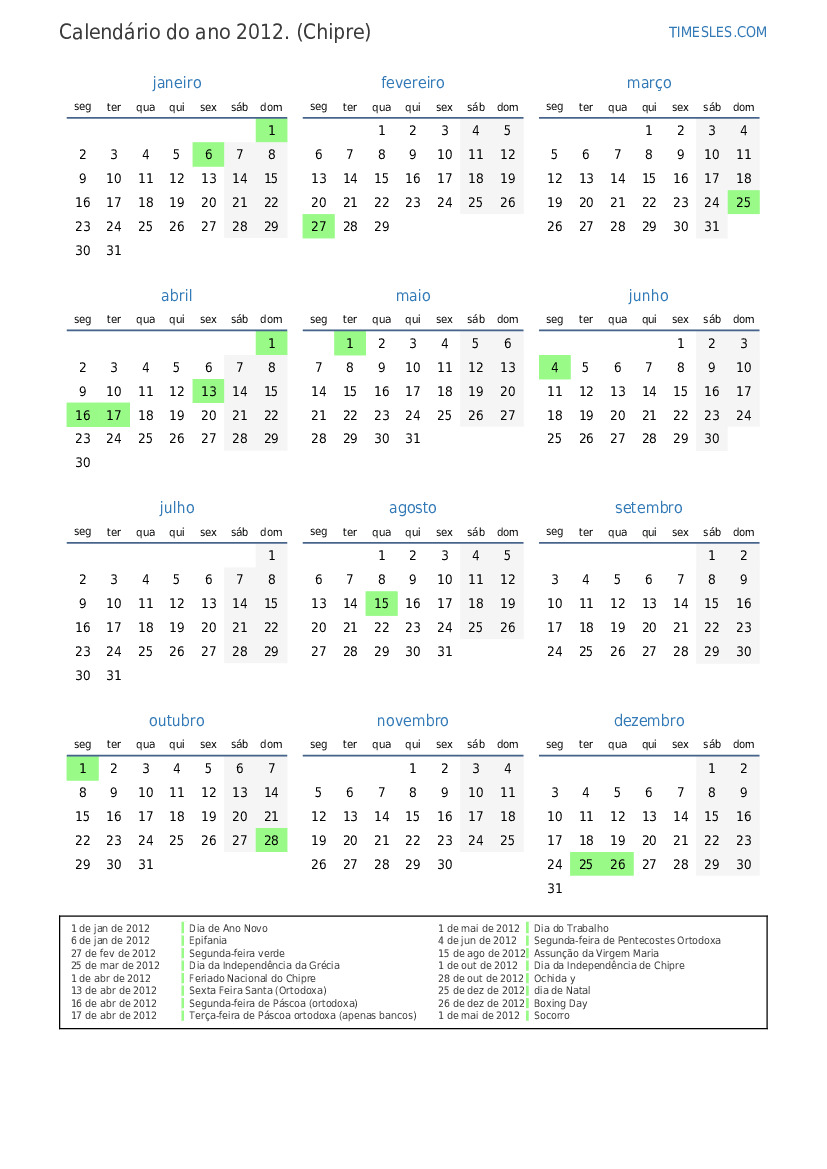17 de abr de 2012 Terça-feira de Páscoa ortodoxa (apenas bancos)