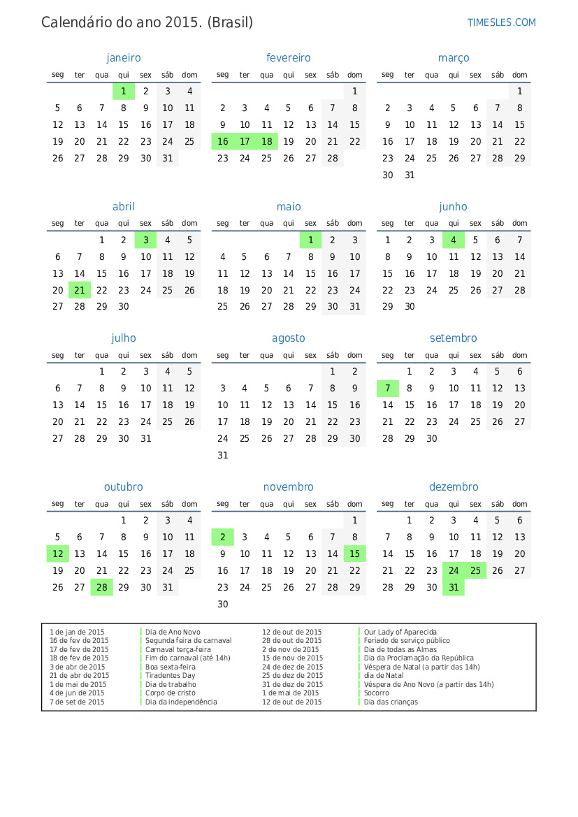 28 de out de 2015 Feriado de serviço público