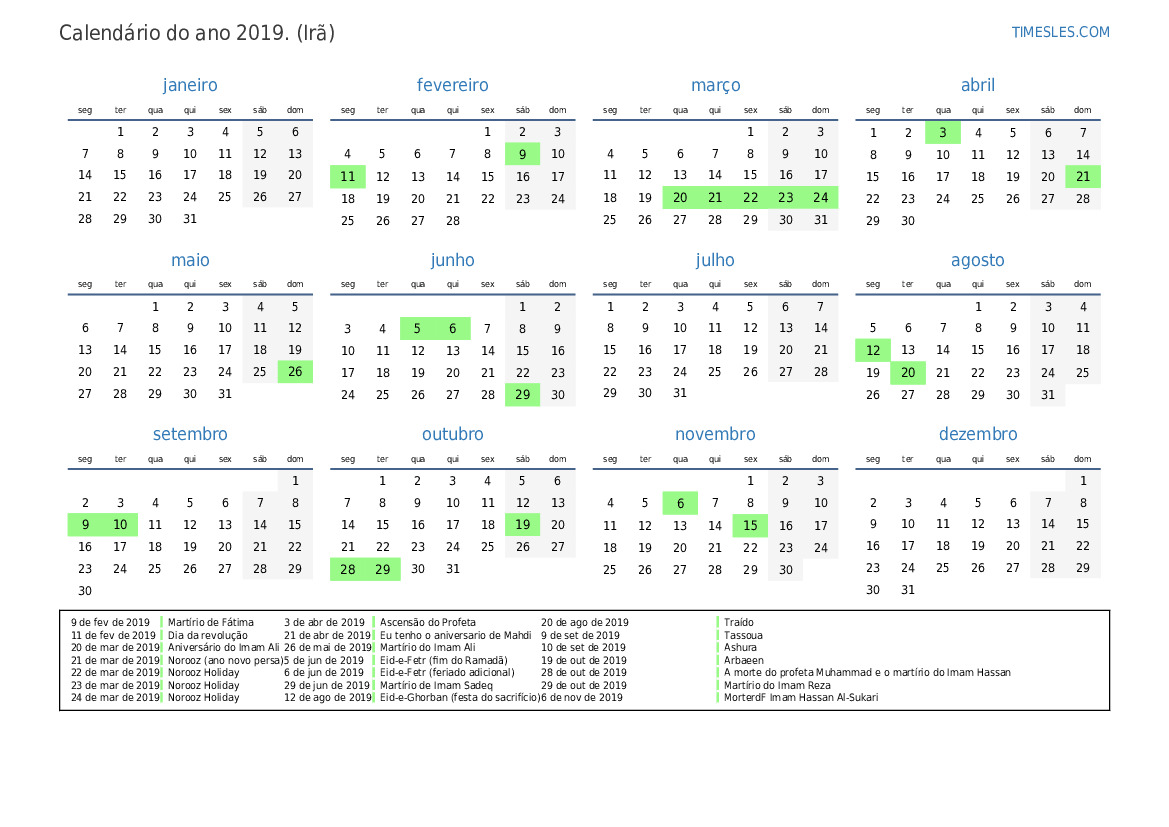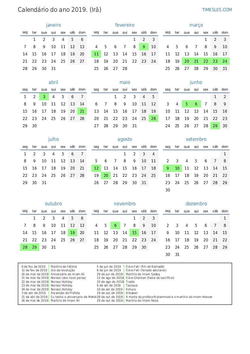 6 de jun de 2019 Eid-e-Fetr (feriado adicional)
