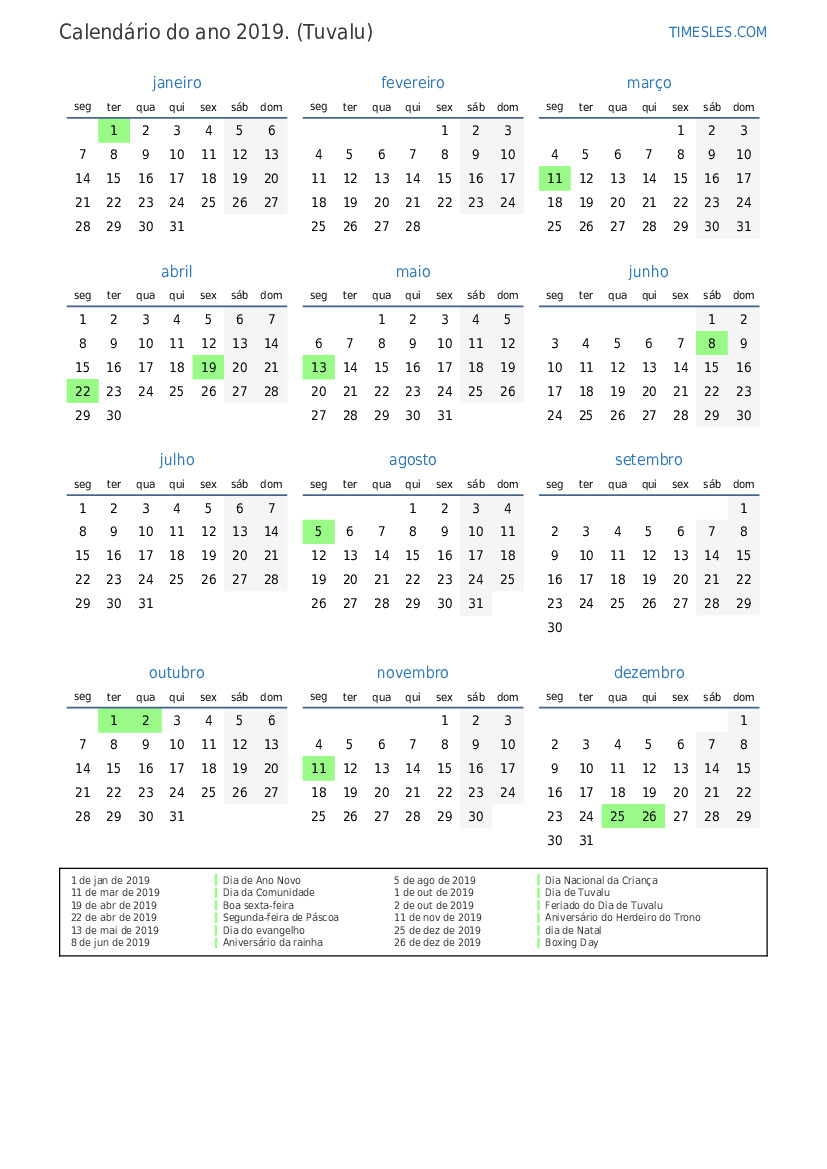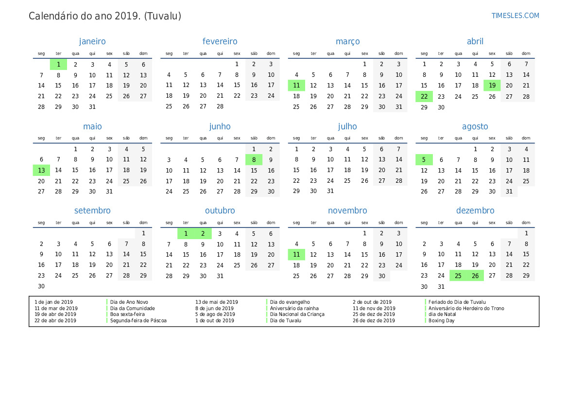 2 de out de 2019 Feriado do Dia de Tuvalu