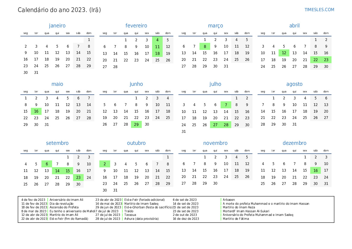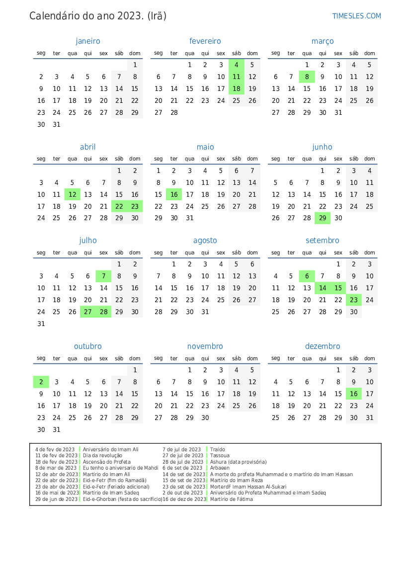 23 de abr de 2023 Eid-e-Fetr (feriado adicional)