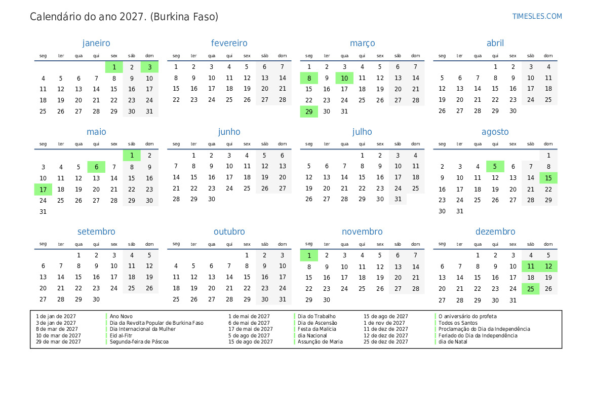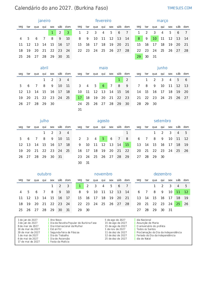 3 de jan de 2027 Dia da Revolta Popular de Burkina Faso