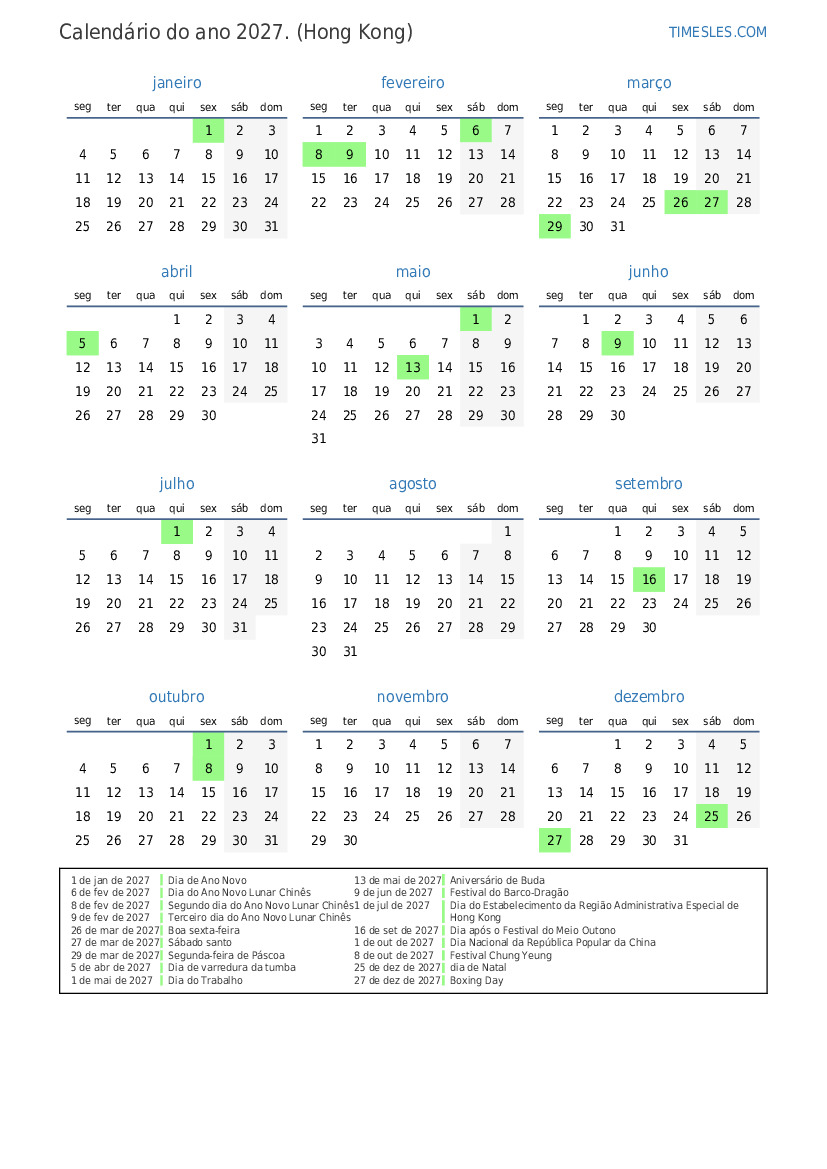 1 de jul de 2027 Dia do Estabelecimento da Região Administrativa Especial de Hong Kong