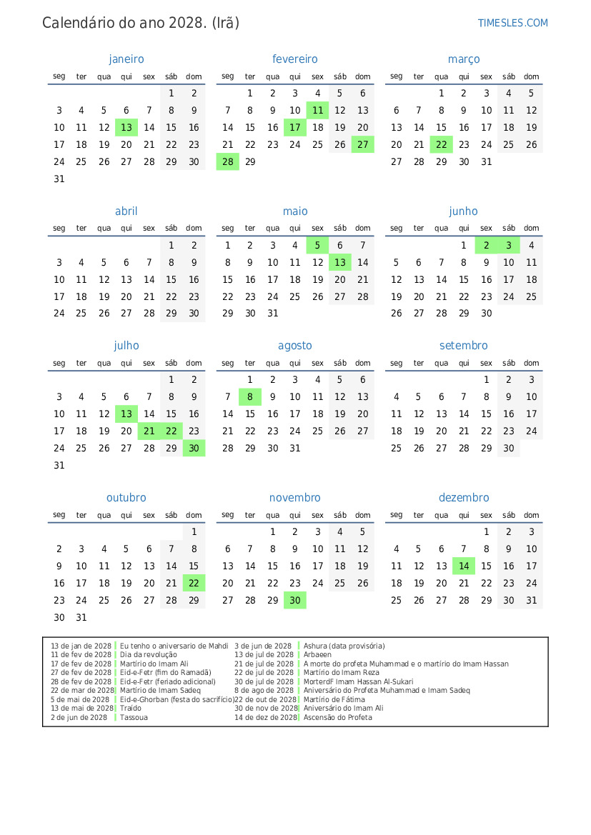 28 de fev de 2028 Eid-e-Fetr (feriado adicional)