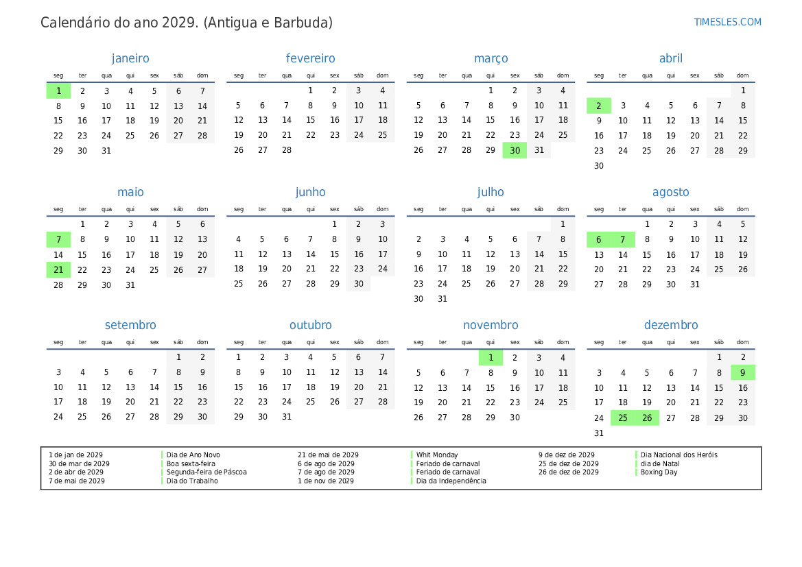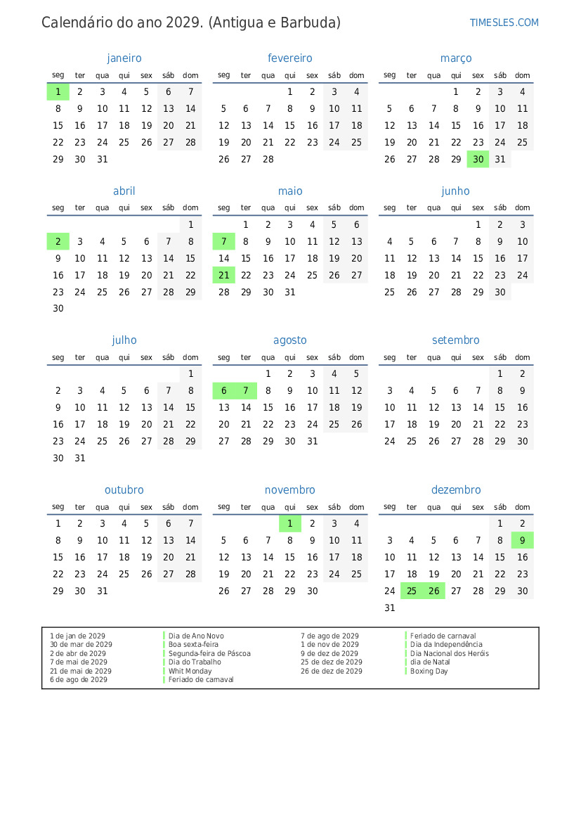 7 de ago de 2029 Feriado de carnaval