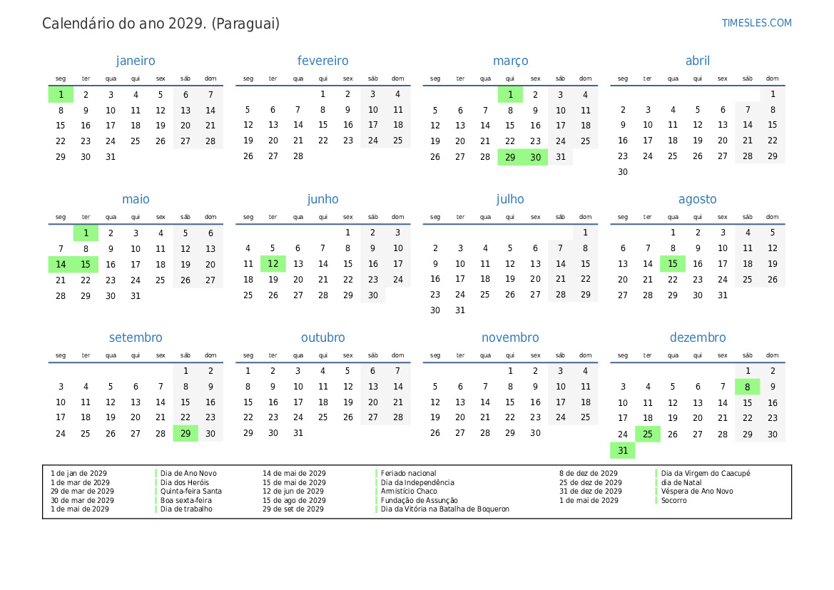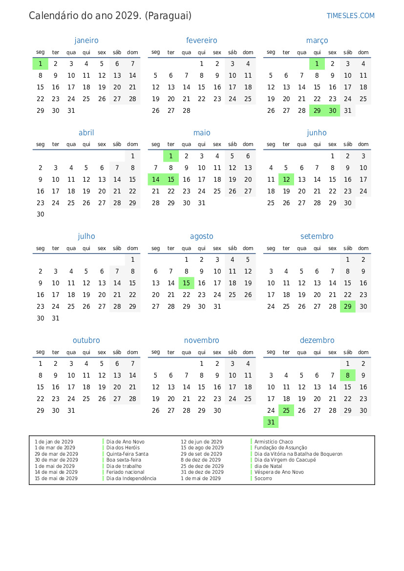 14 de mai de 2029 Feriado nacional