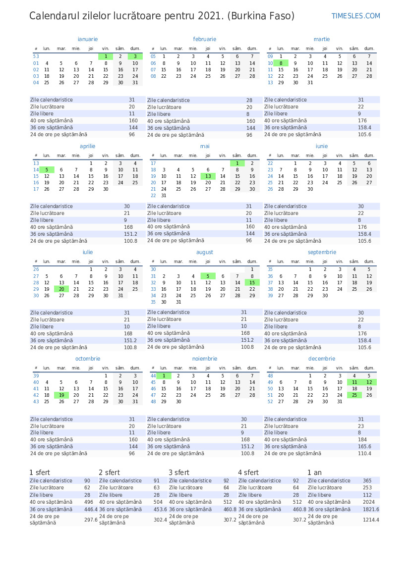 mai 2021 calendarul zilelor lucrătoare cu săptămâni. Saptamana de lucru de cinci zile. Există 3 sărbători și zile libere în Burkina Faso pentru mai 2021. Calendar cu program de lucru și amânarea sărbătorilor.