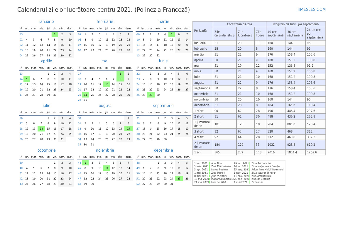 Calendarul zilelor lucrătoare septembrie 2021 pentru Polinezia Franceză