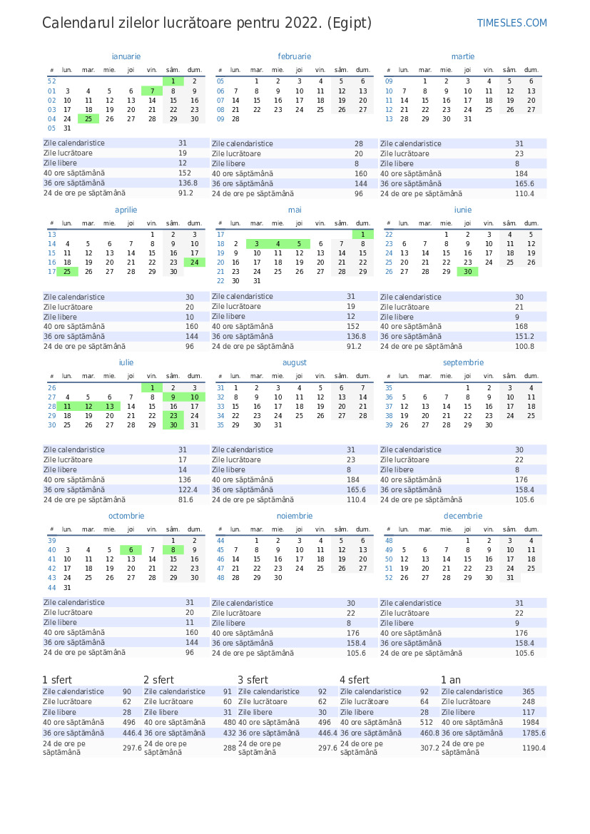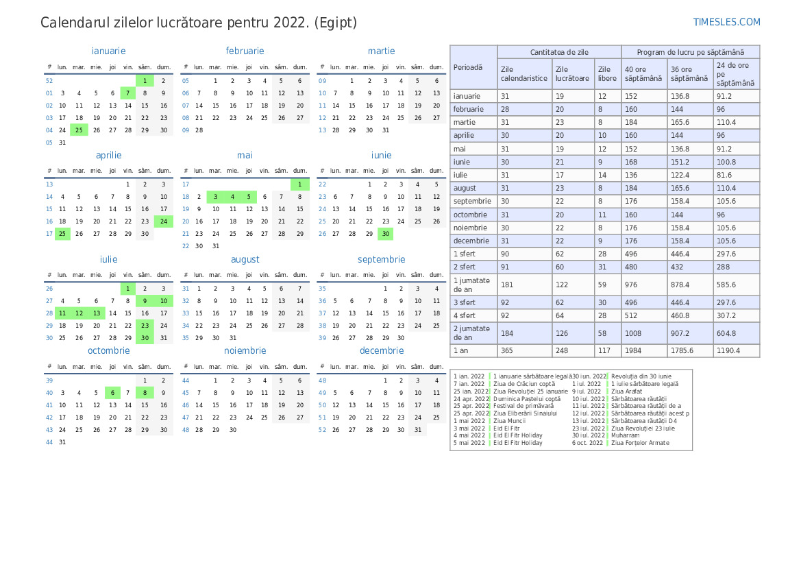 | Zile lucrătoare | 22 |