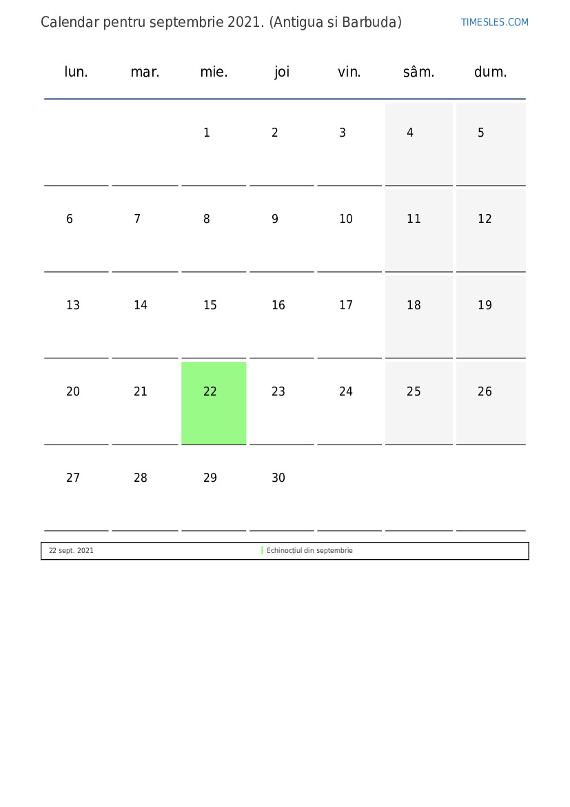 Calendarul septembrie 2021 pentru Antigua și Barbuda