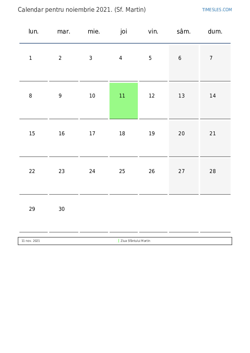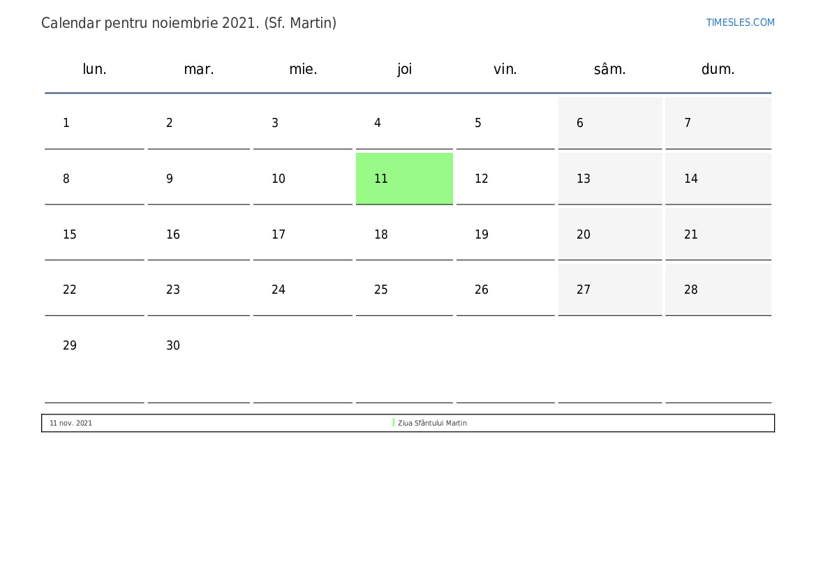 Luna noiembrie conține 30 de zile. Aceasta este 11 lună din 2021. Sezonul anului: toamnă. Luna noiembrie începe luni și se termină marti. În luna noiembrie 2021, sunt 1 sărbători și zile libere în Sint Maarten.