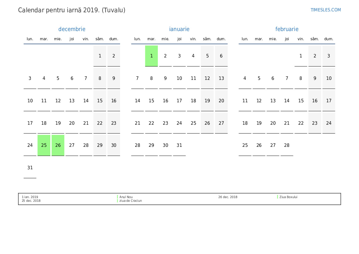 Descărcați și tipăriți calendarul PDF cu sărbătorile și weekendurile pentru toamnă anului 2019 pentru Tuvalu