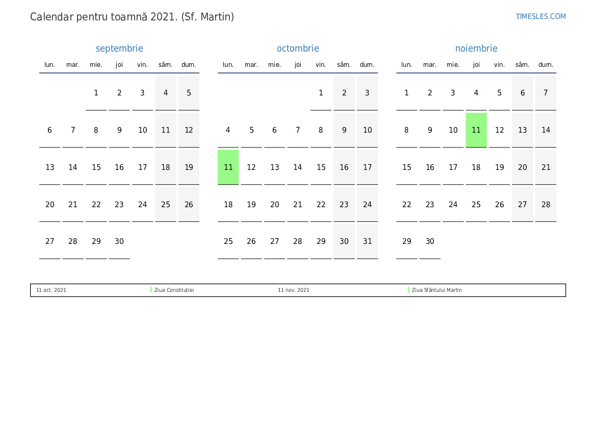 Calendar pentru toamnă 2021 pentru Sint Maarten