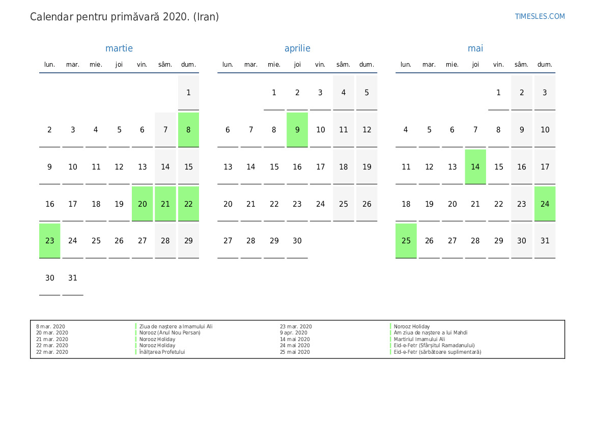 25 mai 2020 Eid-e-Fetr (sărbătoare suplimentară)