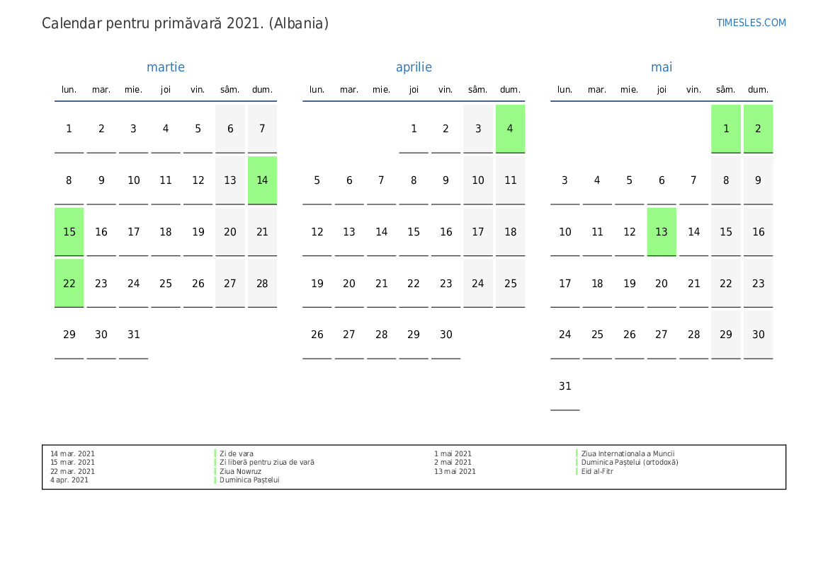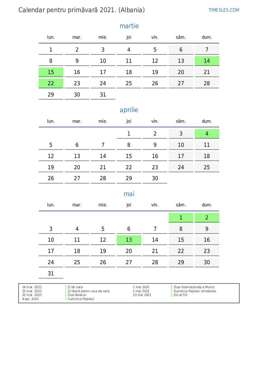 15 mar. 2021 Zi liberă pentru ziua de vară
