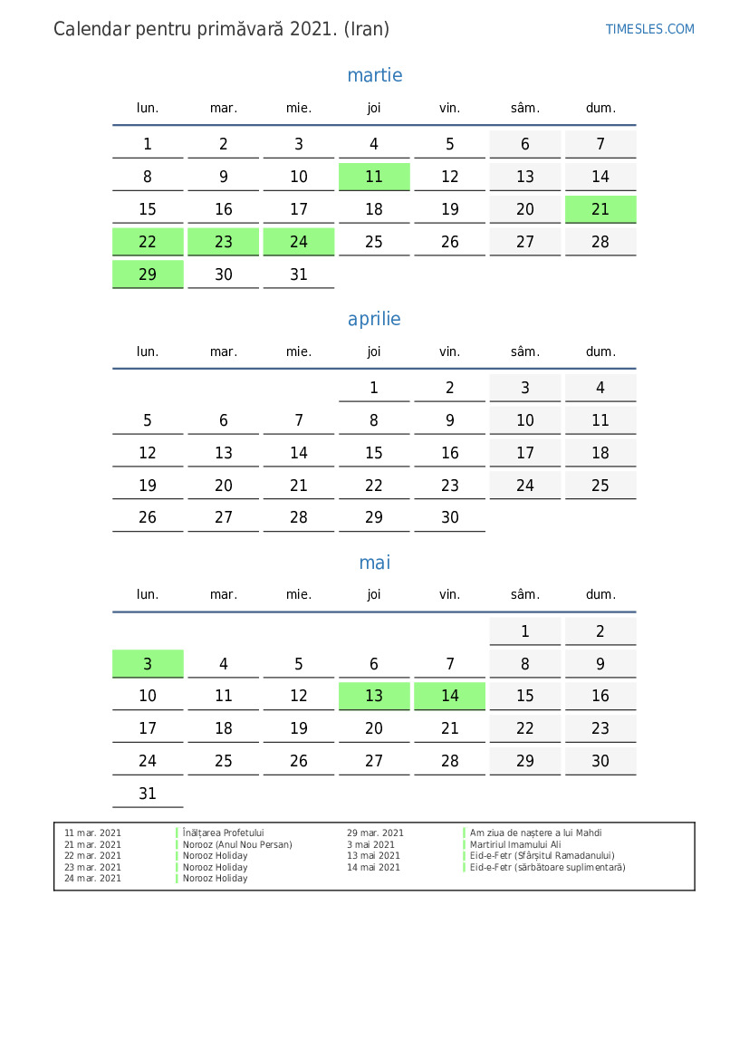 14 mai 2021 Eid-e-Fetr (sărbătoare suplimentară)