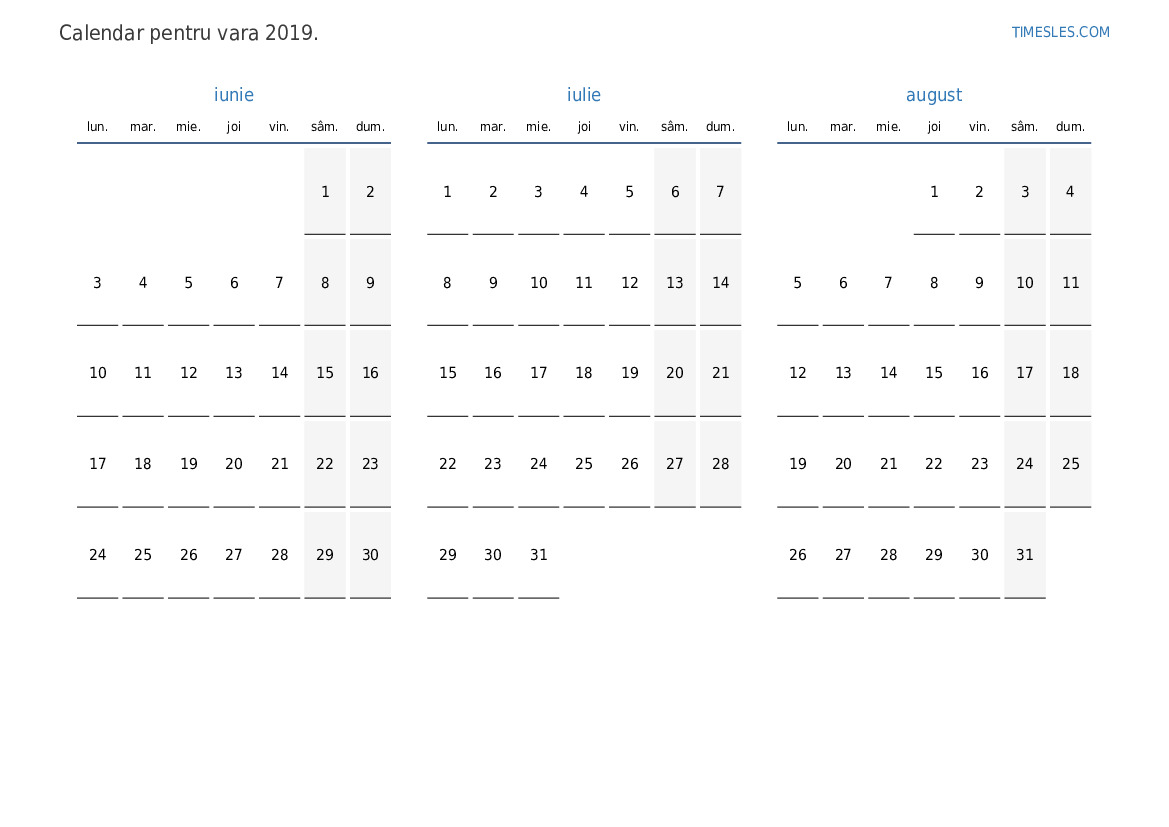 Descărcați și tipăriți calendarul PDF cu sărbătorile și weekendurile pentru vara anului 2019 pentru Paraguay
