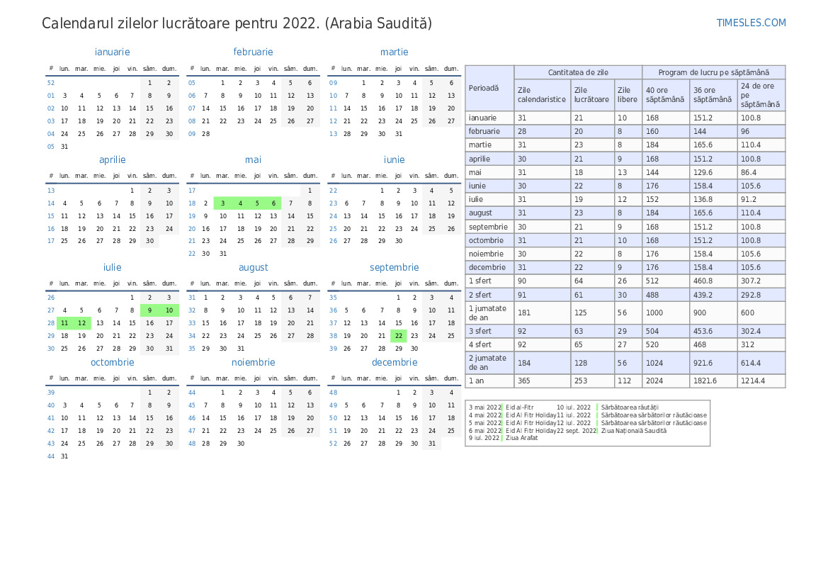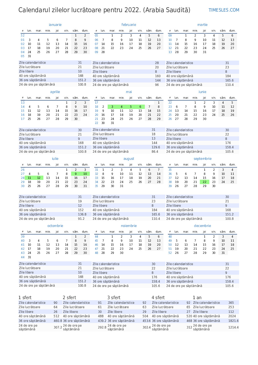 Zile lucrătoare pentru decembrie 2022 pentru Arabia Saudită