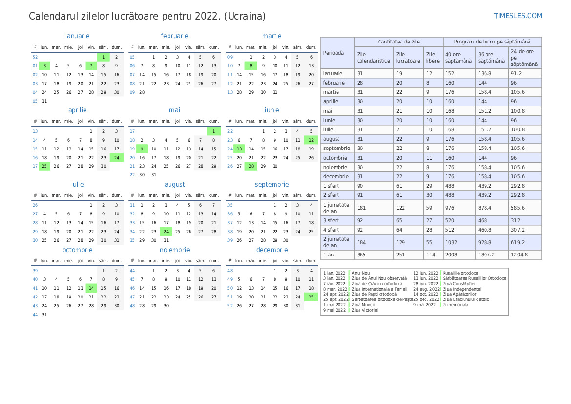 Zile lucrătoare pentru decembrie 2022 pentru Ucraina