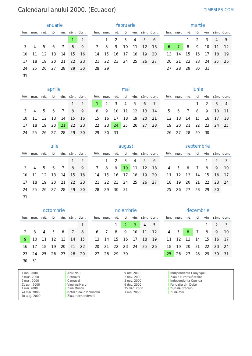 11 mar. 2000 Zi specială de lucru (compensare pentru luni de carnaval)