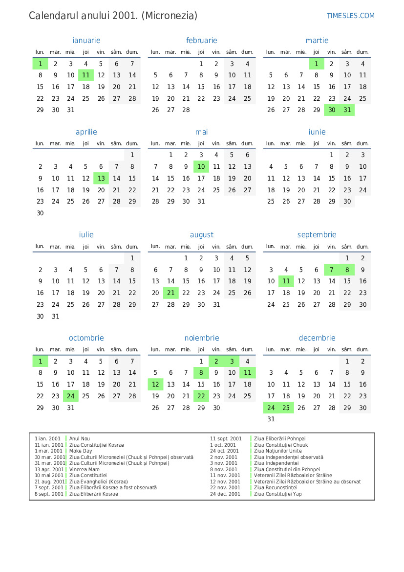 31 mar. 2001 Ziua Culturii Microneziei (Chuuk și Pohnpei)