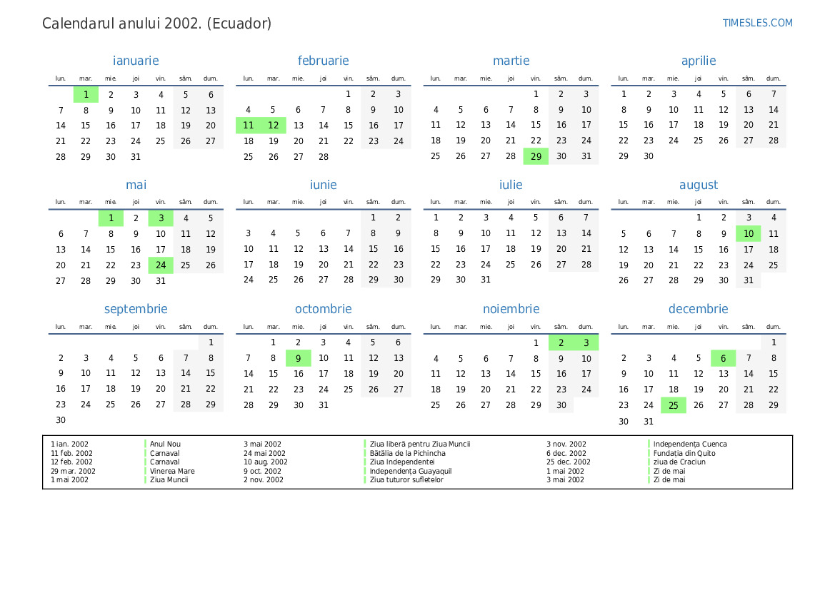 16 feb. 2002 Zi specială de lucru (compensare pentru luni de carnaval)