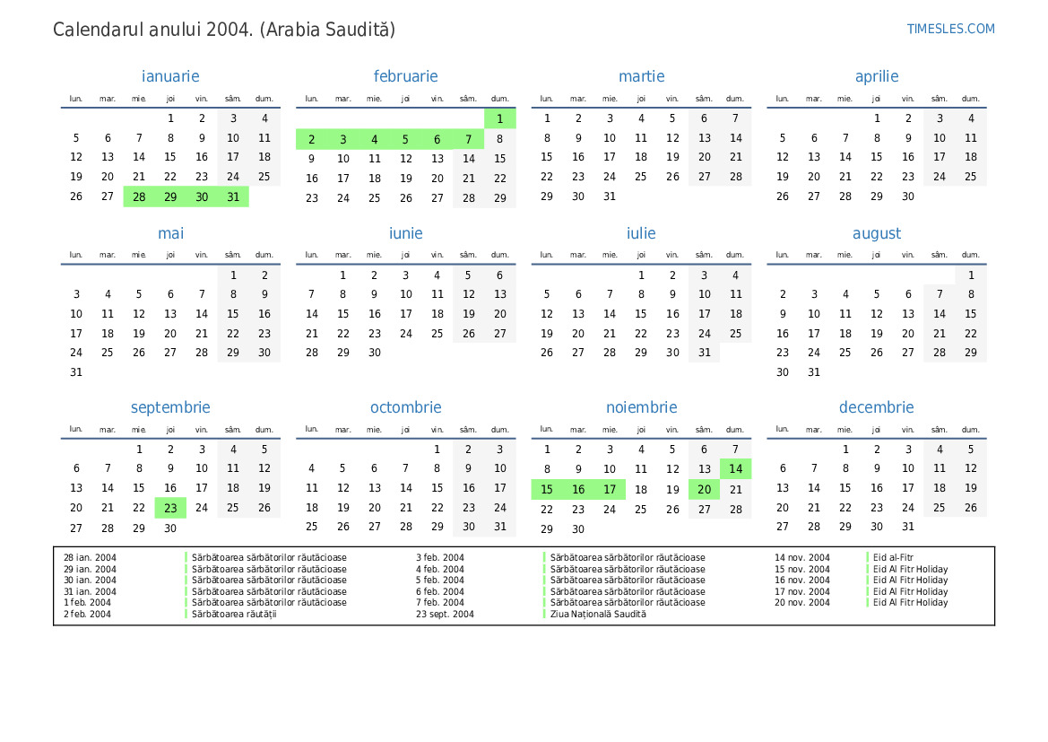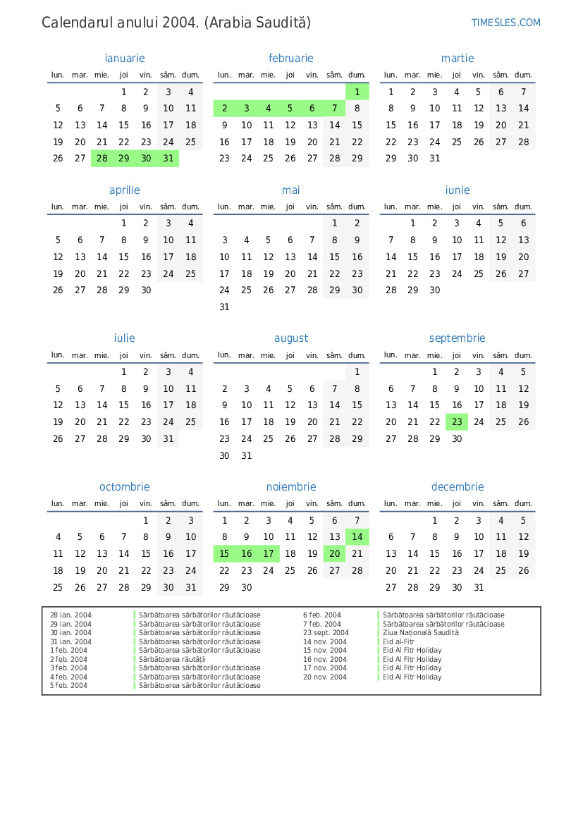 18 nov. 2004 Eid al-Fitr Holiday (numai sectorul public)