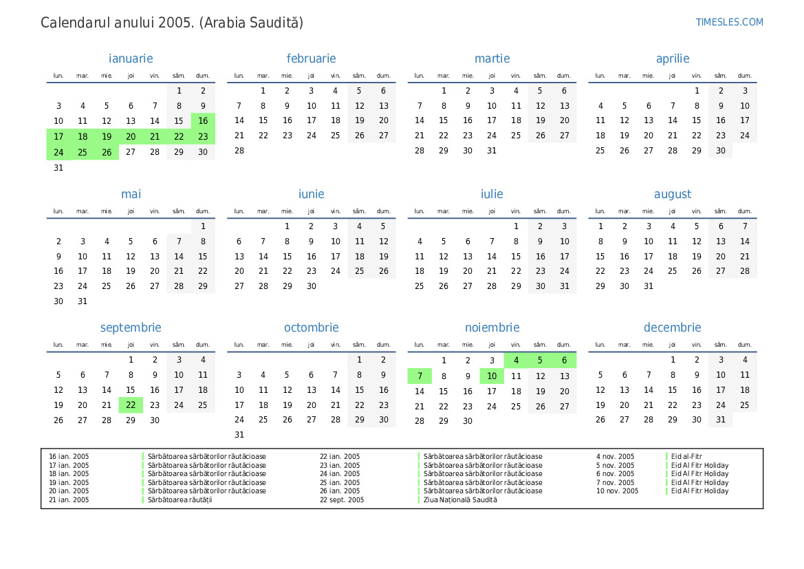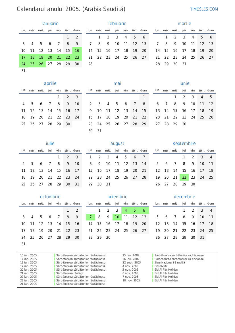 9 nov. 2005 Eid al-Fitr Holiday (numai sectorul public)