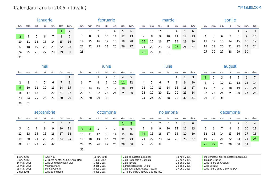 4 oct. 2005 Zi liberă pentru Tuvalu Day Holiday