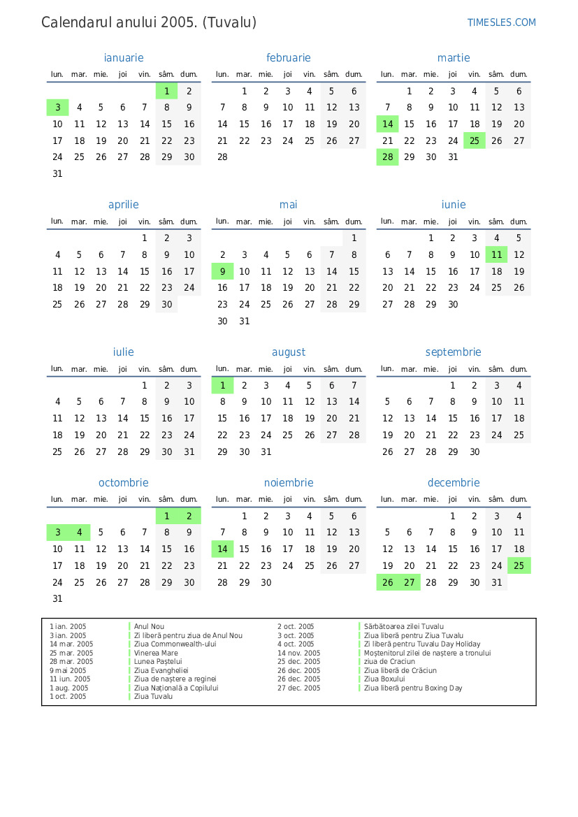 3 oct. 2005 Ziua liberă pentru Ziua Tuvalu