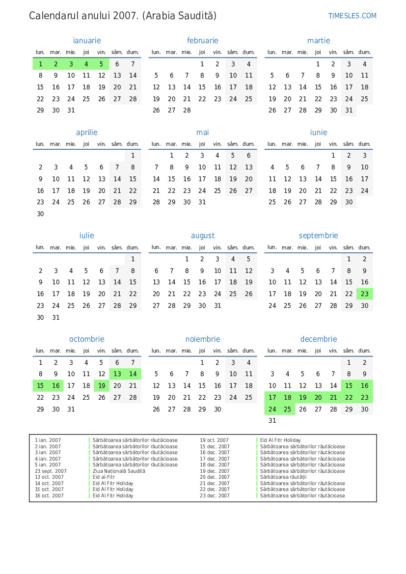 18 oct. 2007 Eid al-Fitr Holiday (numai sectorul public)