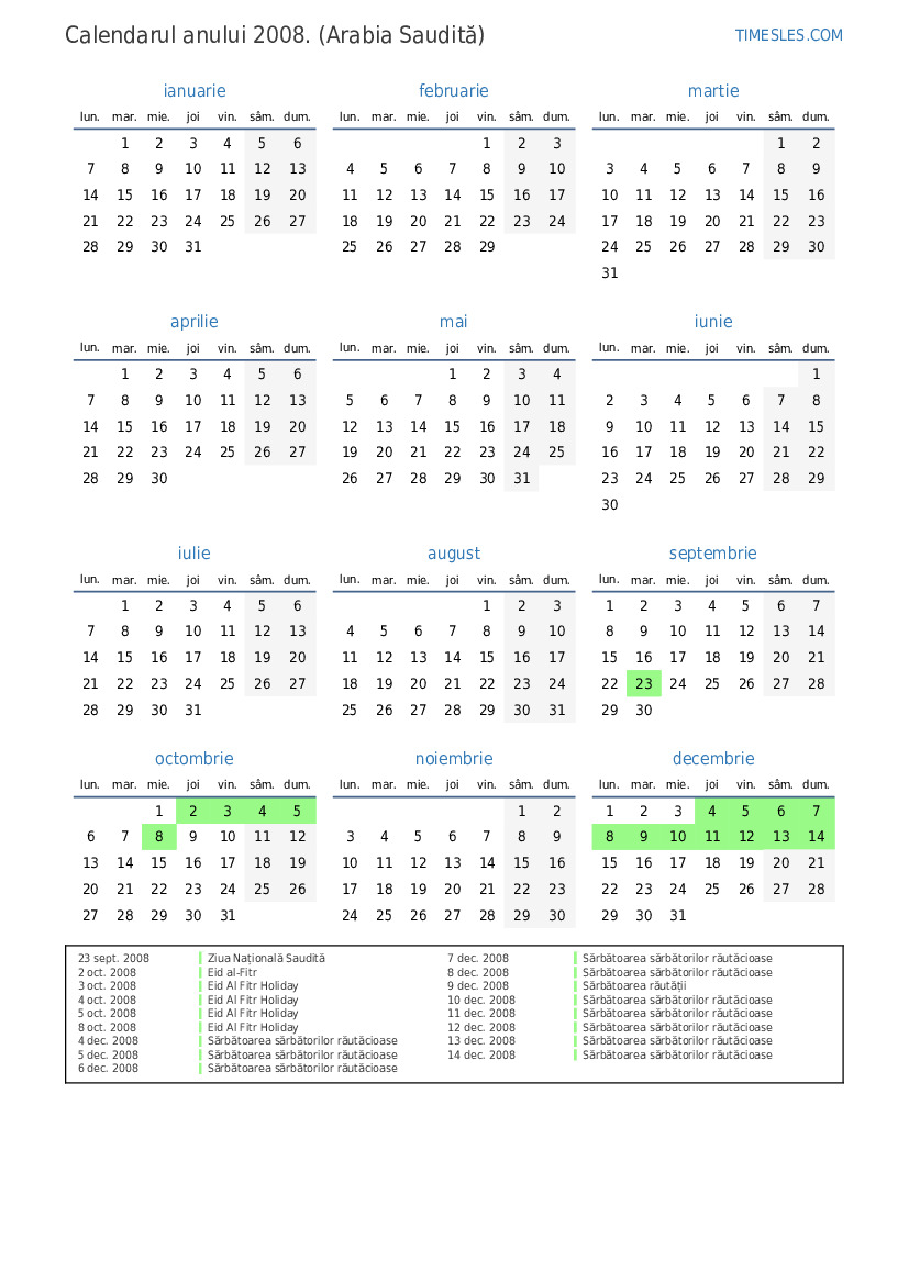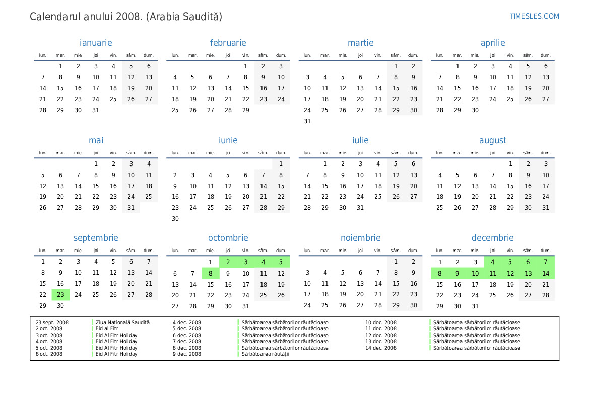 6 oct. 2008 Eid al-Fitr Holiday (numai sectorul public)