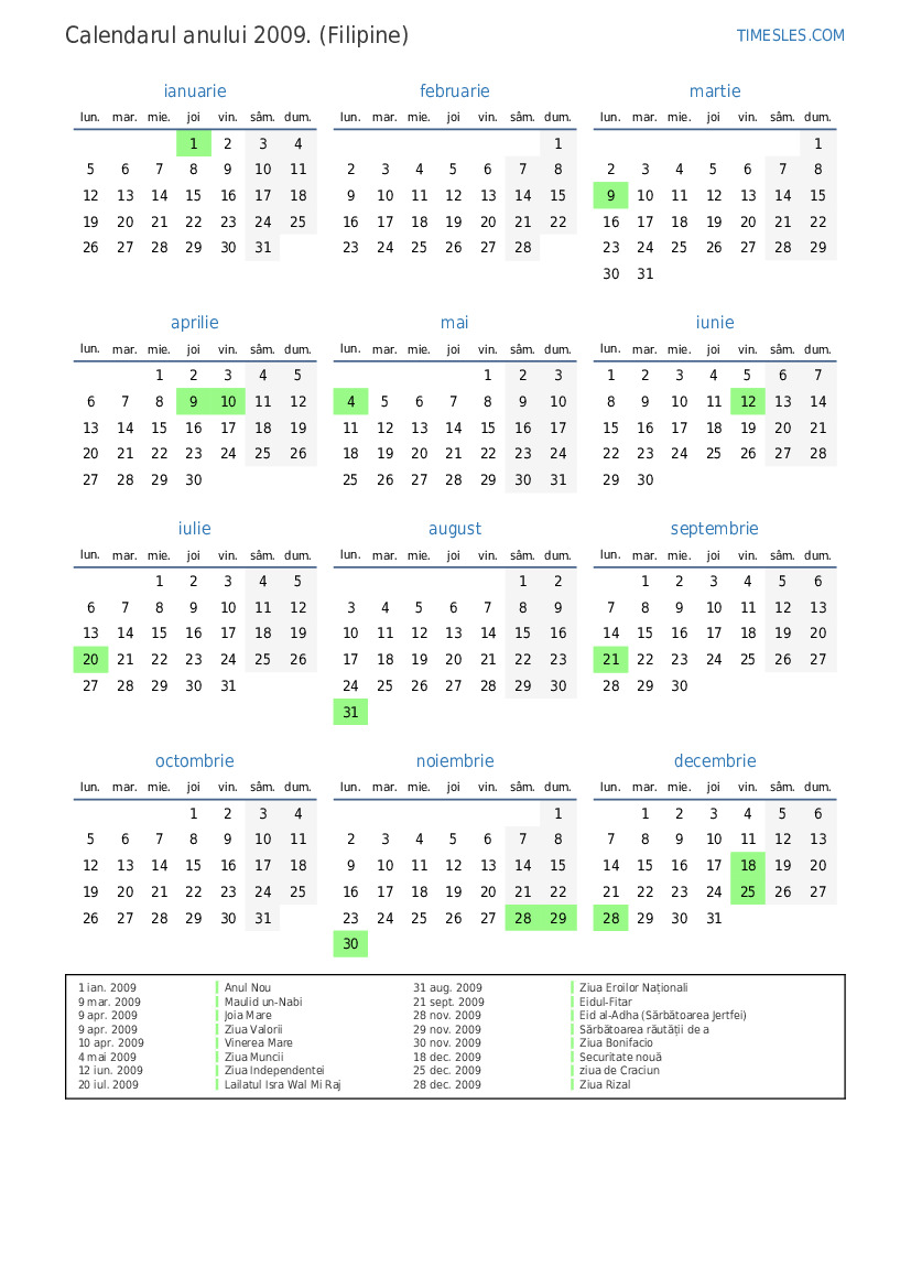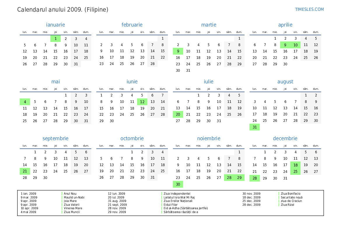 2 ian. 2009 Zi specială nelucrătoare după Anul Nou