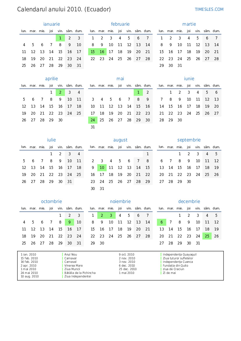 20 feb. 2010 Zi specială de lucru (compensare pentru luni de carnaval)