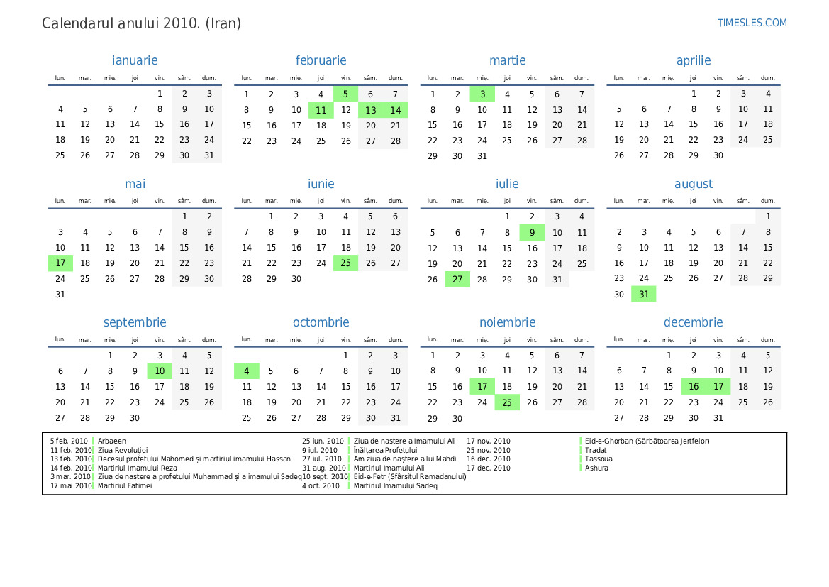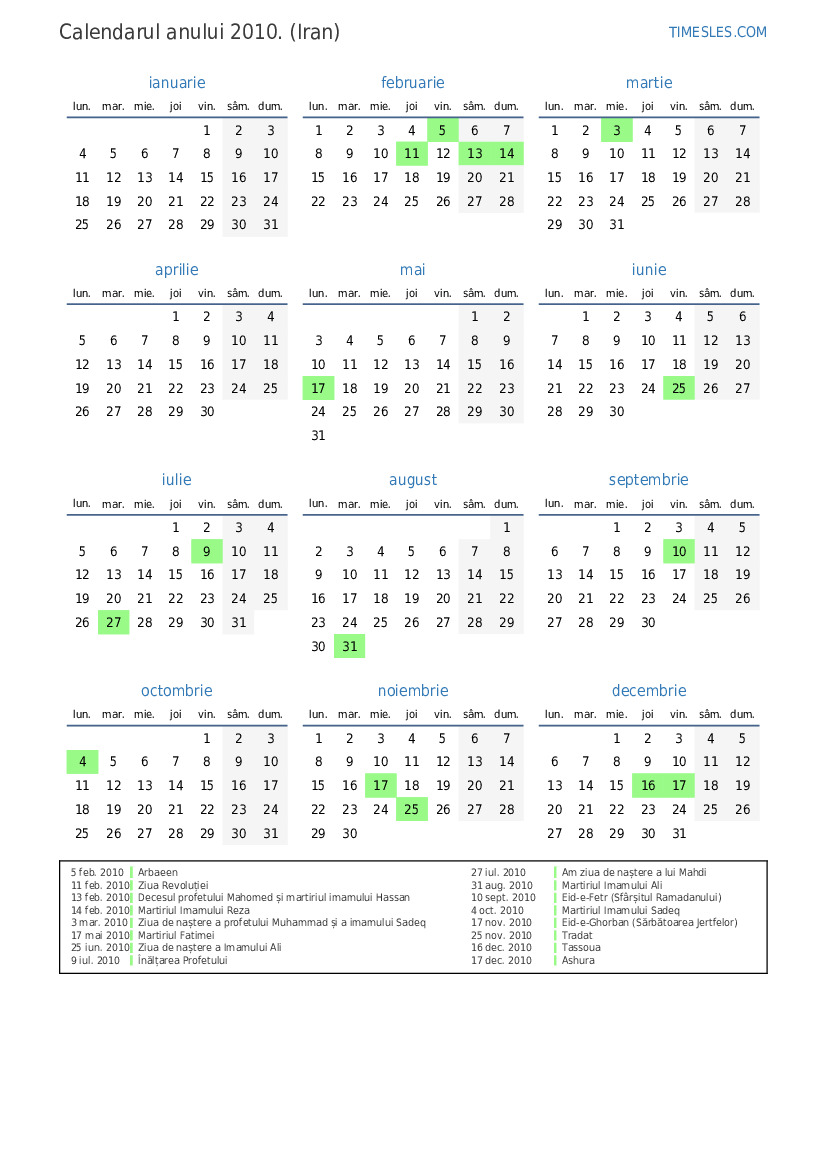 10 sept. 2010 Eid-e-Fetr (Sfârșitul Ramadanului)