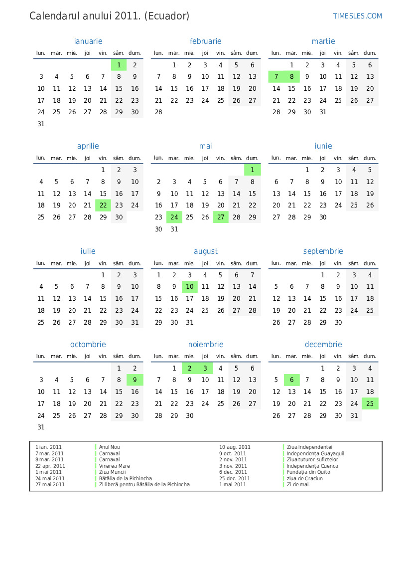 27 mai 2011 Zi liberă pentru Bătălia de la Pichincha
