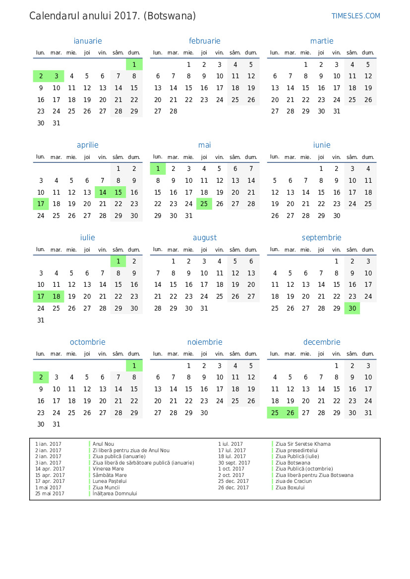 2 oct. 2017 Ziua liberă pentru Ziua Botswana