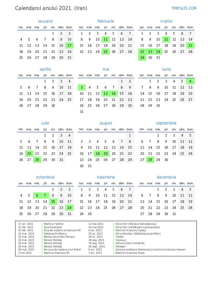 14 mai 2021 Eid-e-Fetr (sărbătoare suplimentară)