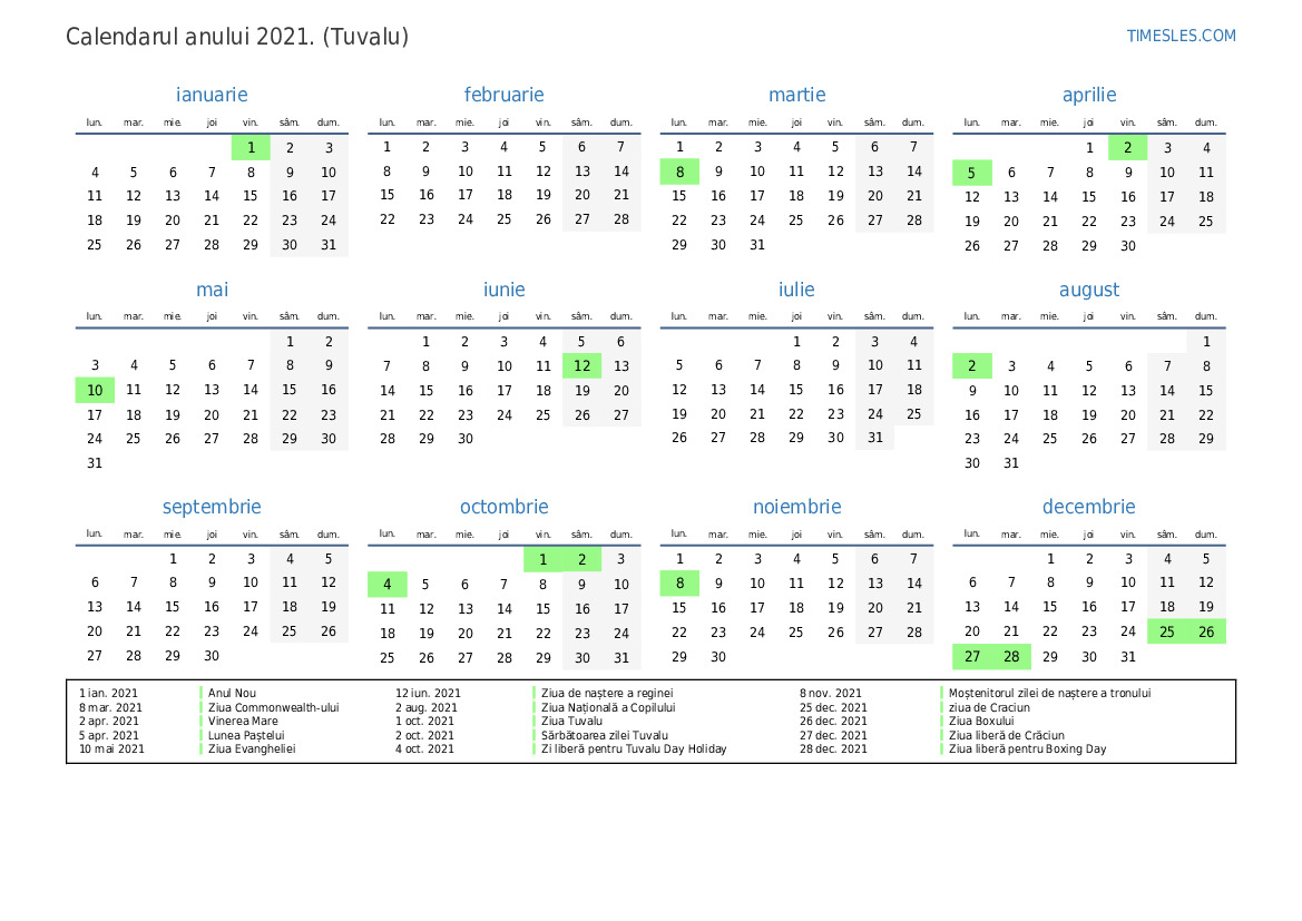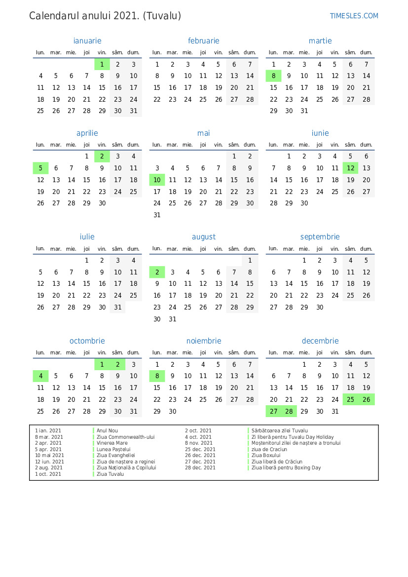 4 oct. 2021 Zi liberă pentru Tuvalu Day Holiday