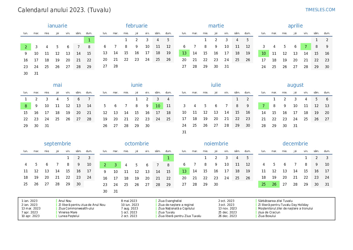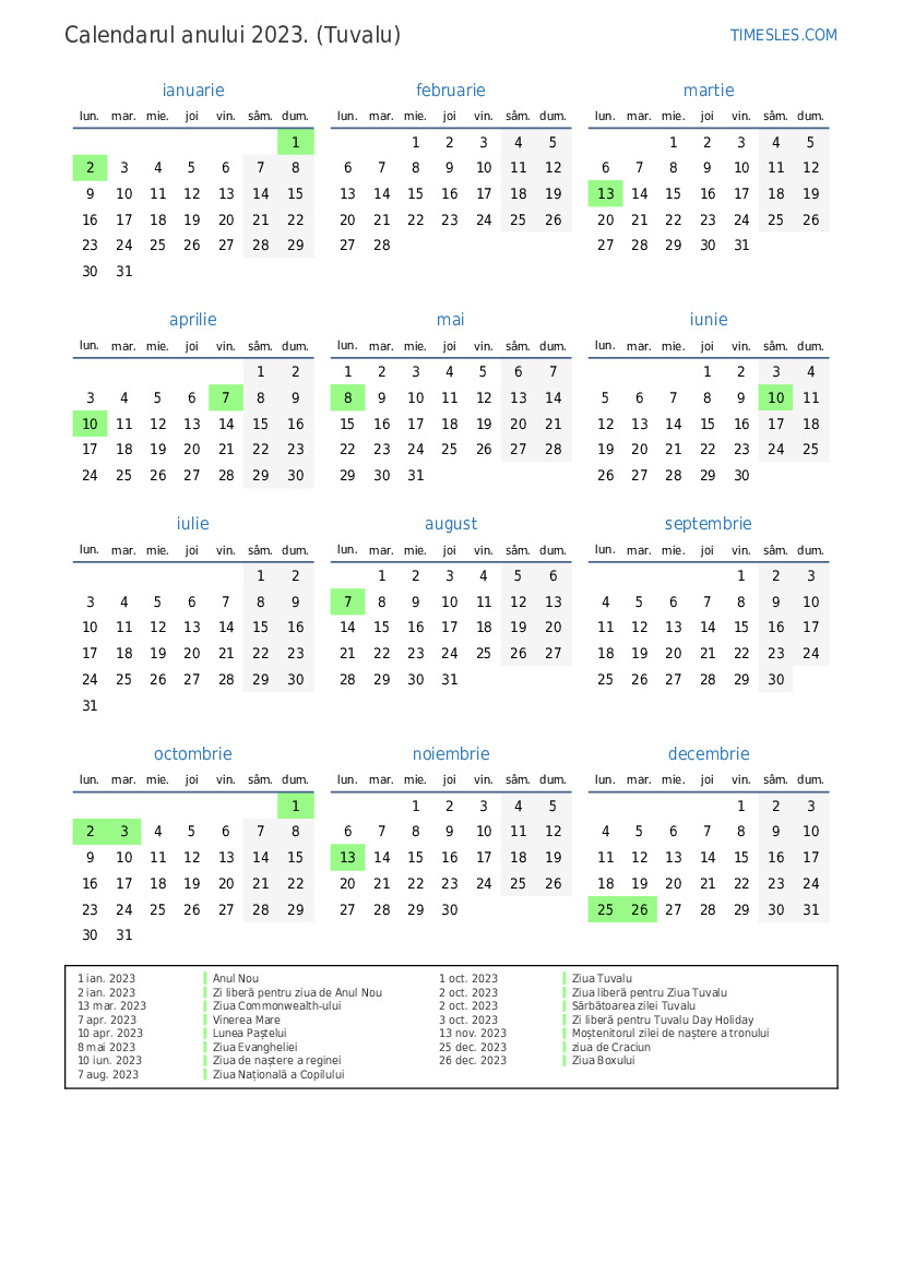 2 oct. 2023 Ziua liberă pentru Ziua Tuvalu