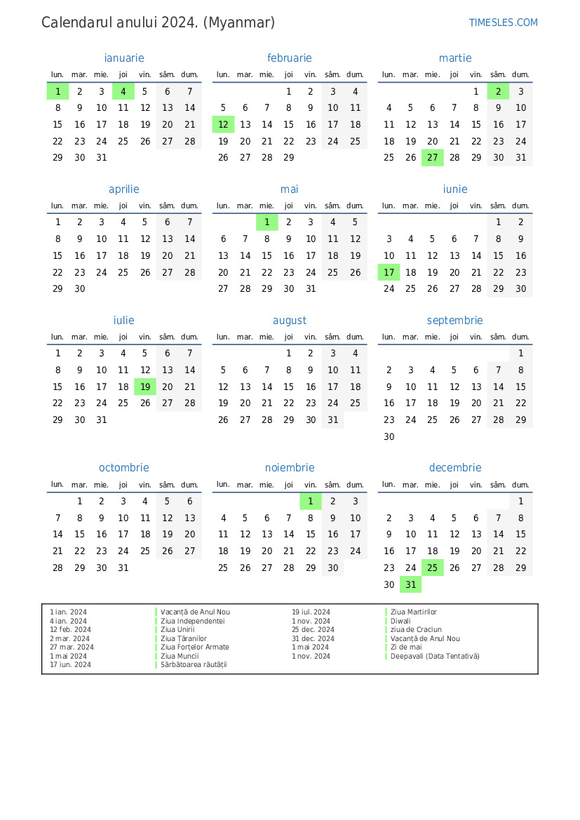 1 ian. 2024 Vacanță de Anul Nou